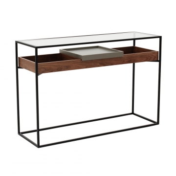 DT-060 胡桃木+黑亞光金工件+透明鋼化玻璃