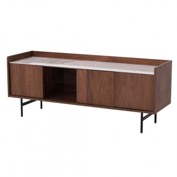 CB-181 胡桃木主體+意大利米灰陶瓷面板+透明鋼化玻璃+黑啞光金工件