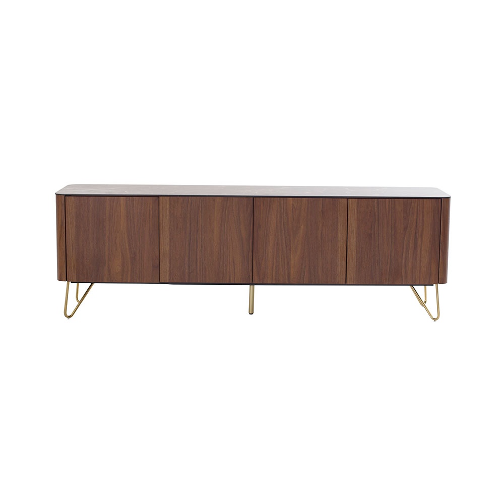 CB-0035A-黑金花陶瓷面板+胡桃木實木拼側板、門板+胡桃木三聚氰胺板背板、中立板、底板+電鍍黃銅金工件