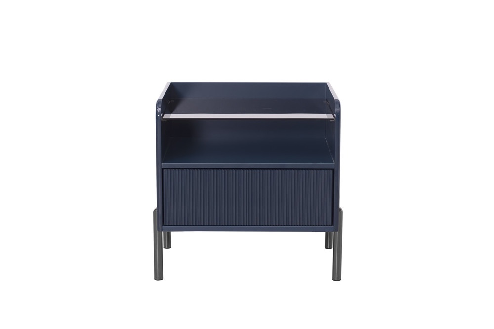 靛藍色亮光主體+煙灰色鋼化玻璃+槍色金工腳