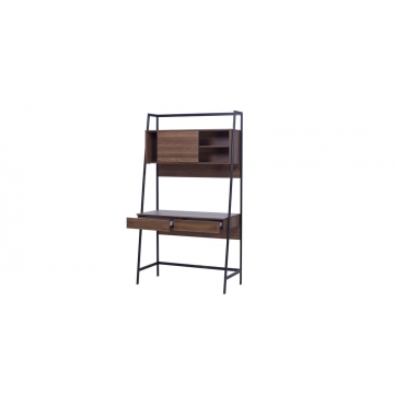 微麻胡桃三聚氰胺板+淺灰布紋三胺板抽盒+黑啞光金工件