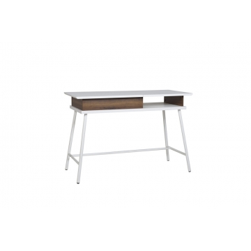 白亮光主體+暖白三聚氰胺板底板+微麻胡桃三胺板側(cè)板+白啞光金工件